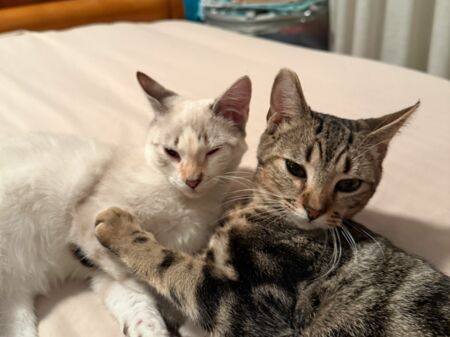 Desde entonces, ha llenado nuestro hogar de alegría. En apenas unos meses, él y nuestro otro gato se han convertido en los mejores amigos. ¡Qué cariñosos!