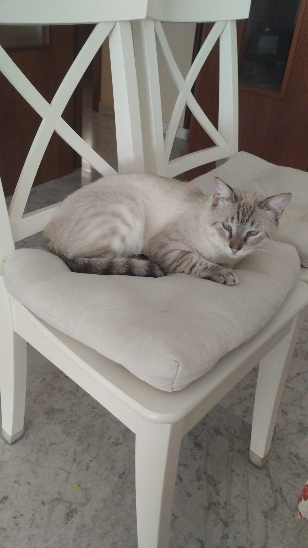 Lo visitamos en Aldea Felina, conocimos a Luisa, un encanto de persona, y lo tenía tan claro que era Edu a quien quería como nuevo miembro de nuestra familia que no hubo más que hablar. Finalizamos vacaciones el día 18 de agosto y volvimos a por Edu el día 20, es un amor.