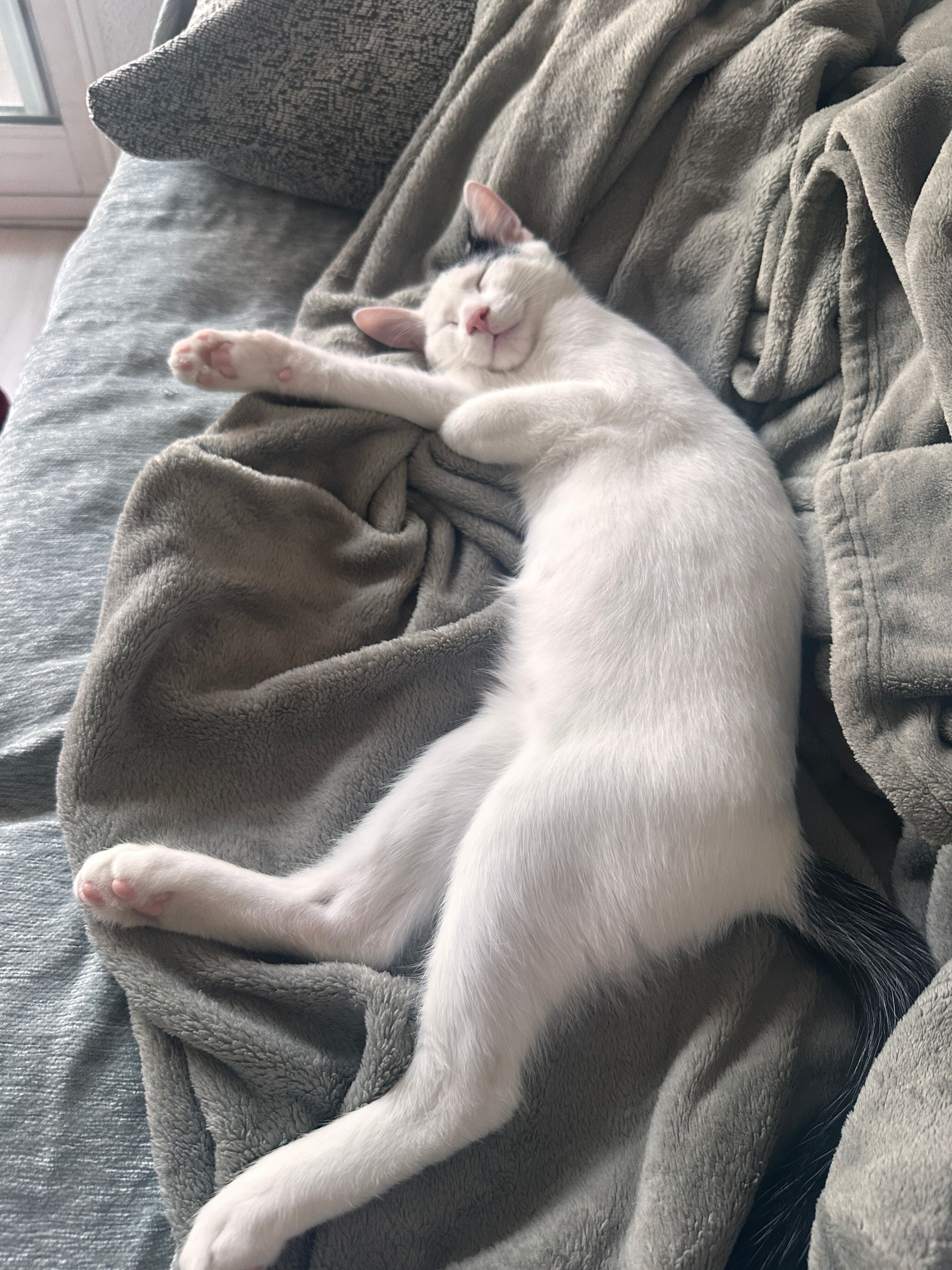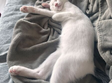 Primero llegó Mei. Era muy tímida y miedosa, parecía que el mundo le imponía demasiado… pero con paciencia nos enseñó su verdadera cara: ¡una gata que nunca se cansa de mimos y caricias!